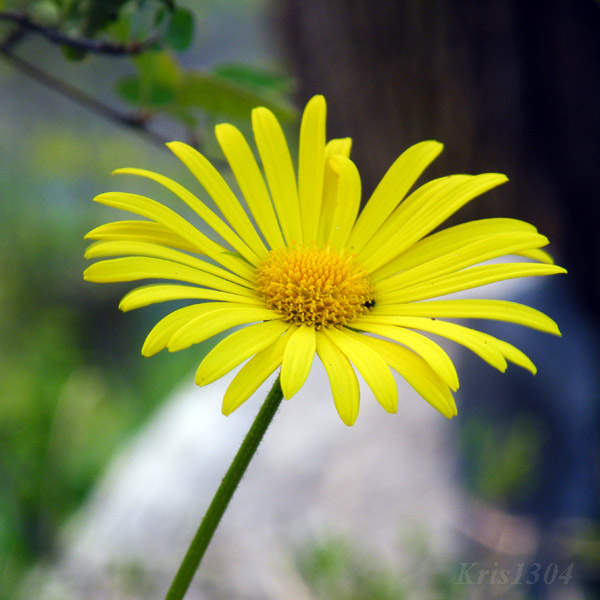 | OPIS | Kwiaty żółte, zebrane w średniej wielkości koszyczki wyrastające po 1-2 na szczycie pędów. Dno koszyczka jest silnie wypukłe. Brzeżne kwiaty języczkowe duże.