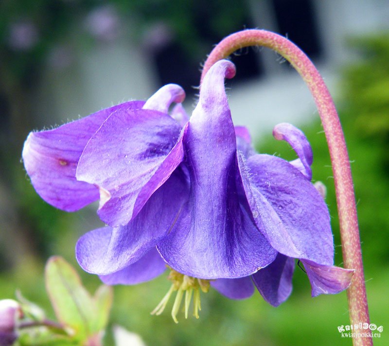 | OPIS | Kwiaty fioletowe, (bardzo rzadko w naturze białe lub różowe) osadzone są na długich szypułkach, z właściwą dla orlików hakowato zagiętą ostrogą. Okwiat złożony z pięciu części bezostrogowych i pięciu zaopatrzonych w ostrogi.