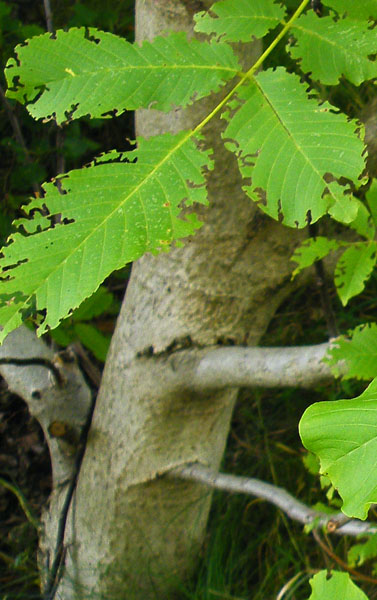 | LIŚCIE | Naprzeciwległe, długości 25-40 cm, nieparzystopierzaste z 5-9 równowąskimi listkami. Największe trzy znajdują się u szczytu i mają 10-18 cm długości i 6-8 cm szerokości (para przy podstawie ma jedynie 5-8 cm długości). Rozwijają się stosunkowo późno, na przełomie kwietnia i maja.