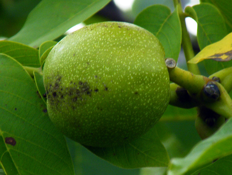 | WŁASNOŚCI LECZNICZE | Działanie: liście i zielone łupiny mają właściwości przeciwbakteryjne i przeciwzapalne, a także przeciwbiegunkowe i przeciwkrwotoczne. Ze względu na dużą ilość garbników polecane są jako środek ściągający w zaburzeniach żołądkowo-jelitowych. Odwar stosuje się w stanach zapalnych gardła i jamy ustnej, oraz do przemywania i okładów przy trądziku, liszajach, oparzeniach. Zielone orzechy niszczą pasożyty układu pokarmowego. Napar z kory jest środkiem łagodnie przeczyszczającym. Ze względu na zawartość nienasyconych kwasów tłuszczowych owoce orzecha włoskiego zalecane są w diecie przeciwmiażdżycowej. |