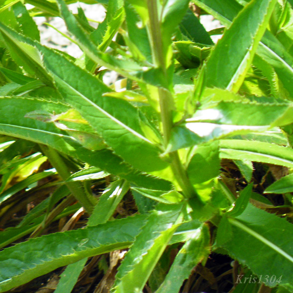 | LIŚCIE | Lancetowate, na górnej stronie krótko owłosione, na dolnej pajęczynowato owłosione. Brzegi mają płytko ząbkowane o ząbkach zakończonych kłującymi szczecinkami.