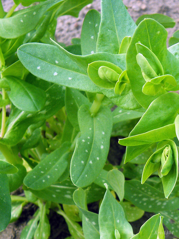 | LIŚCIE | Pojedyncze, podługowate i zaokrąglone, dość często z białymi plamkami. Liście odziomkowe wyrastają na długich ogonkach, łodygowe nasadami obejmują łodygę. Górne przysadki mają orzęsione brzegi.