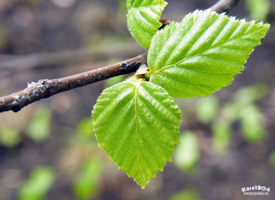 | LIŚCIE | Skrętoległe, jajowate lub romboidalne o zaokrąglonych kantach, drobno ząbkowane. Blaszka liściowa długości 3-5 cm, u młodych liści od spodu owłosiona, z czasem łysiejąca. Ogonki liściowe początkowo owłosione.