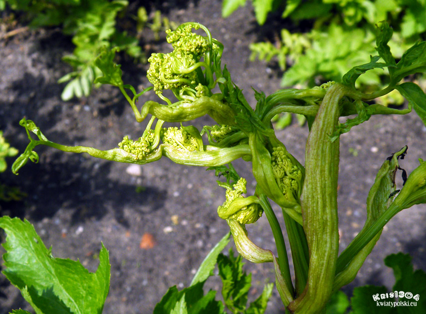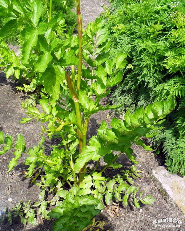 | UWAGI | W pierwszym roku wytwarza odziomkową rozetę wyprostowanych liści o wys. ok. 40 cm. W drugim roku wytwarza łodygi kwiatostanowe o wys. do 100 cm., kanciasto bruzdkowane, u podstawy delikatnie owłosione. |