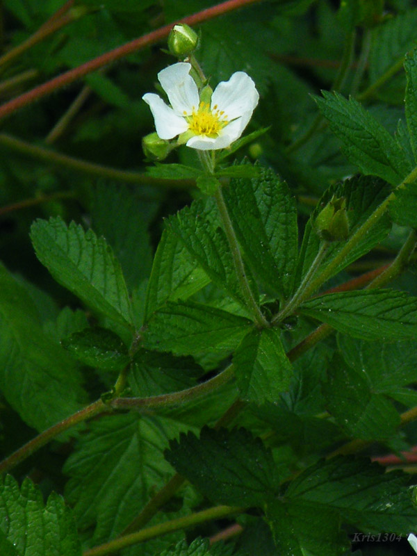 | CECHY CHARAKTER. | Owoce całkiem nagie. Płatki białe. Dolne liście pierzaste, 5-9-listkowe, górne 3-listkowe. |
