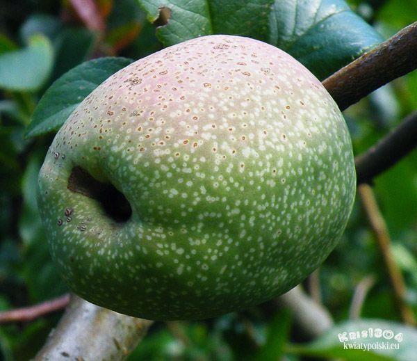 | OWOCE | Owoc pozorny, duży, podobny do jabłka, nakrapiany, zielonożółty, bardzo twardy, ale aromatyczny.
