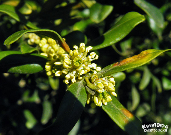 | POKRÓJ | Krzew o zimozielonych liściach, do 1,5 m wysokości. Pokrój kulisty, rozgałęziony.