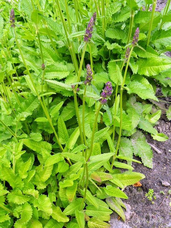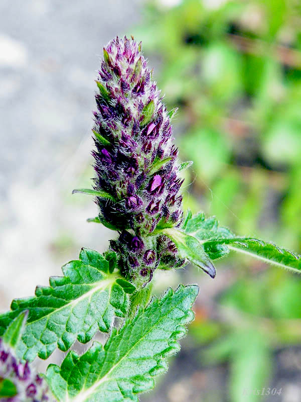 | LIŚCIE | Podłużnie jajowate, tępo zakończone, u nasady sercowate, karbowane, krótkoogonowe lub siedzące. Na szczytach łodyg wyrastają kwiatostany w formie nibykłosów, zbudowane z wargowych jasnopurpurowych kwiatów.