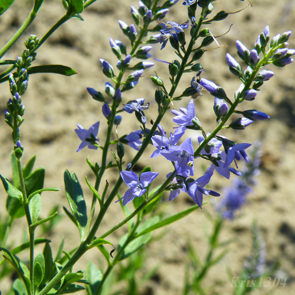 | OPIS | Kwiaty w gonach na końcach rozgałęzionej łodygi, na krótkich szypułkach. Płatki niebieskie, w zarysie trójkątne. Kielich wolnodziałkowy.