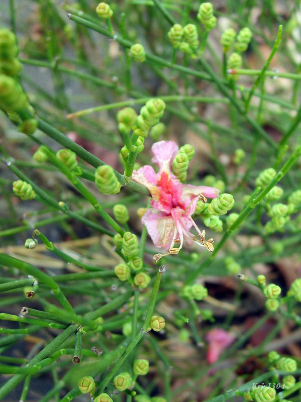 | LIŚCIE | Szybko odpadające, drobne i roślina wygląda jakby nie miała liści.