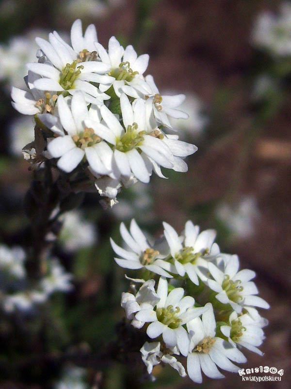 | OPIS | Kwiaty białe o głęboko rozciętych płatkach korony i zebrane w gęste grono. Pręciki dwusilne, przy czym dłuższe są dołem oskrzydlone, zaś krótsze posiadają uszka.