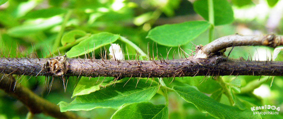 | LIŚCIE | Liście 15-20 cm dł, matowozielone, szarozielone pod spodem, nie cierniste, złożone z okrągłych listków ok. 5 cm, późno rozwijające się na wiosnę.