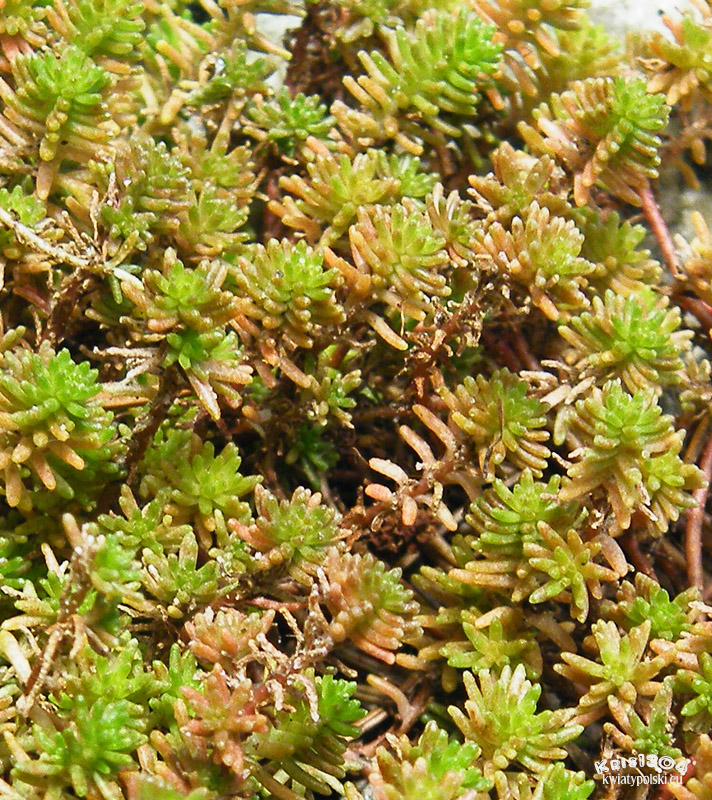 | UWAGI | Podobny gatunek - rozchodnik ostry. Ma nieco inne liście: krótko i szerokojajowate, o zaokrąglonej nasadzie i końcach zwężających się od nasady do wierzchołka. Brak wyrostka u nasady liści, ulistnienie rzadsze. Ma ostry smak. |