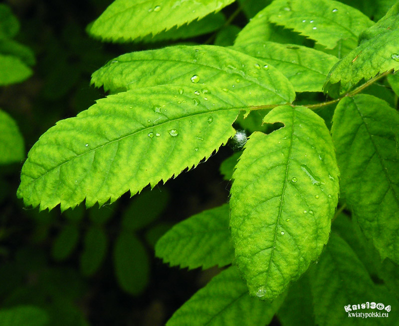 | LIŚCIE | Nieparzysto-pierzaste. Cienkie, nagie lub owłosione, czasami gruczołowate, 7-11 listkowe. Listki podwójnie piłkowane, jajowate lub podługowate. Są nagie lub owłosione, czasami także ogruczolone. Na spodniej stronie są jaśniejsze.