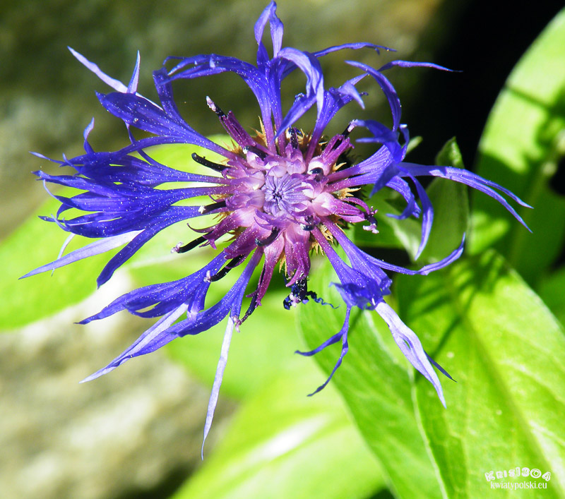 | OPIS | Kwiaty zebrane w koszyczek. Zewnętrzne kwiaty w koszyczku to kwiaty języczkowe, obupłciowe, purpurowoniebieskie o koronie podzielonej na równowąskie łatki. Wewnątrz koszyczka kwiaty rurkowate, purpurowe, o długości 20-40 mm.