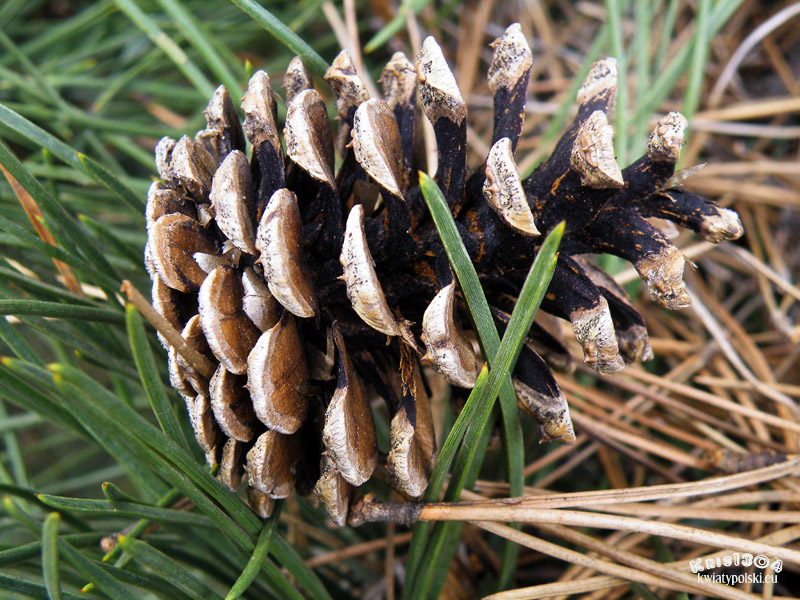 | SIEDLISKO | W Polsce gdzie niegdzie wprowadzana sztucznie do drzewostanów sosny zwyczajnej, a także jako drzewo ozdobne w parkach i ogrodach. |