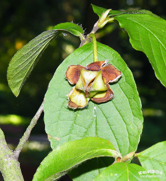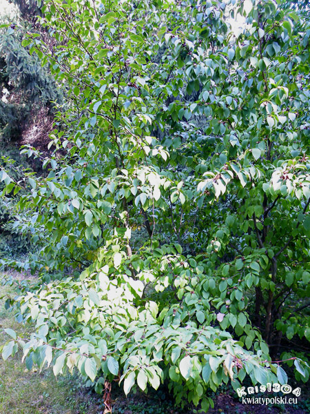 | LIŚCIE | Sezonowe, eliptyczne do odwrotnie jajowatoeliptycznych, barwy zielonej. Na gałęziach ustawione skrętolegle. Jesienią przebarwiające się na wspaniałe kolory.