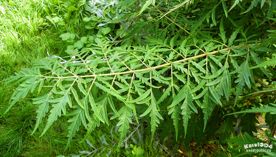 | LIŚCIE | Ciemnozielone, nieparzystopierzaste, jesienią przebarwiają się na żółto i czerwono. Nieparzystopierzaste, listki głęboko wcinane.