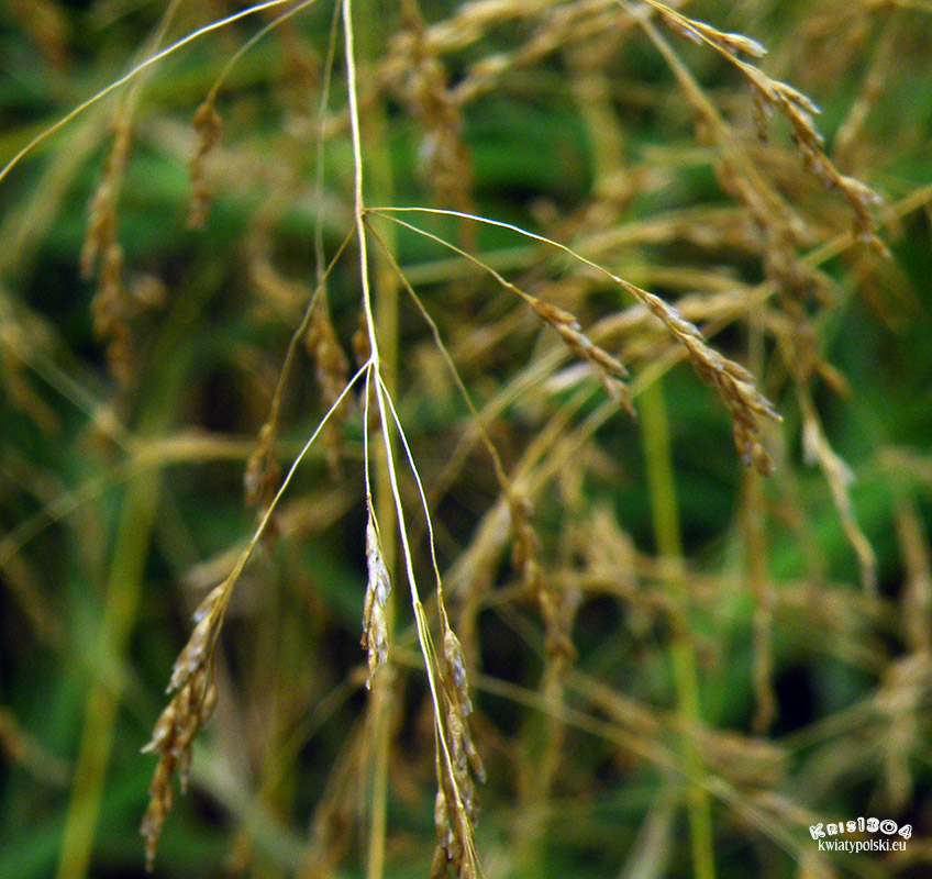 | OPIS | Kwiaty zebrane w wiechę złożoną z 2-3 kwiatowych kłosków. Gęsta, piramidalna wiecha ma długość do 10-50 cm. Dolne odgałęzienia wiechy mają 2-4 gałązki u podstawy. Pojedynczy kłosek ma długość 2-5 mm, przy czym odcinek poniżej górnego kwiatka jest o połowę krótszy od kwiatka.