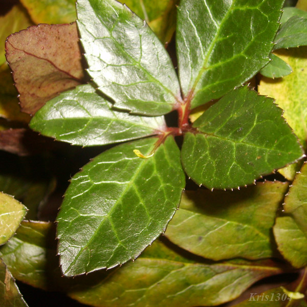 | LIŚCIE | Zimozielone, 7-9 sieczne, o odcinkach jajowatych, brzegiem kolczaste.