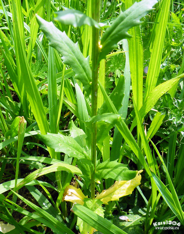 | LIŚCIE | Jasnozielone, siedzące, lancetowate, zatokowo ząbkowane.