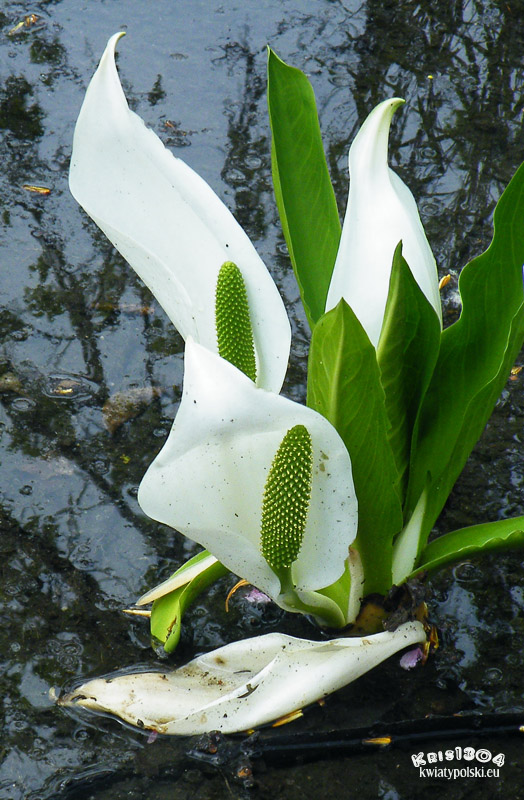 | OPIS | Piękne śnieżnobiałe kwiaty, zbudowane z pochwy otaczającej zielony pręcik. Kolby kwiatostanow pojawiają się na początku wiosny, na naturalnych stanowiskach w porze roztopów, przed rozwojem liści. Kwiaty w przeciwieństwie do tulejnika amerykańskiego niemal nie posiadają nieprzyjemego zapachu. Kwiaty obupłciowe, o 4 nierównych listkach okwiatu, gęsto porywają kolbę. Listki okwiatu wąskie, zaokrąglone. Kwiaty składają się z 4 pręcików o płaskich nitkach i główkach oraz pojedynczego słupka o 1-2-komorowej zalążni z siedzącym znamieniem.