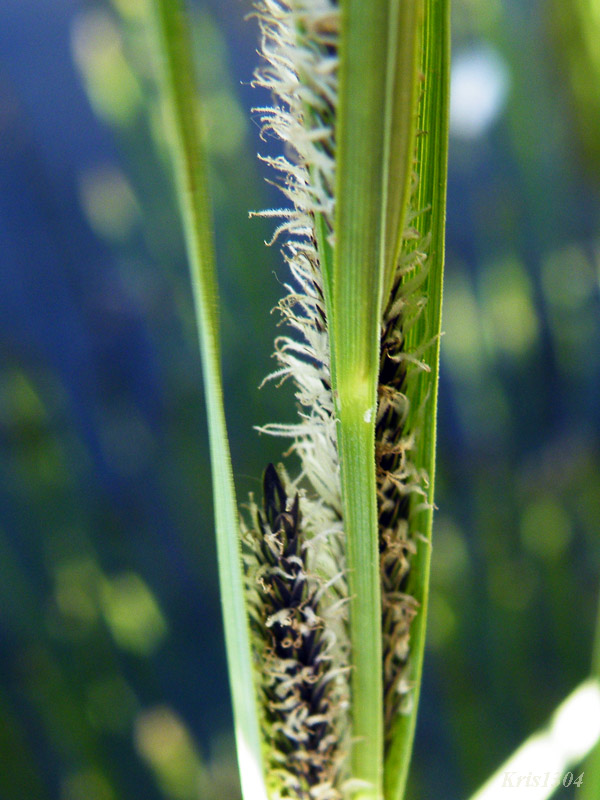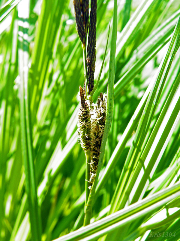 | OPIS | Roślina jednopienna, kwiaty rozdzielnopłciowe, zebrane w kwiatostany - kłosy. Kłosy szczytowe męskie, od dwóch do czterech, długości 2-6 cm. Kwiaty męskie z trzema pręcikami. Kłosy żeńskie dolne, od trzech do pięciu, niekiedy do ośmiu, długości 3-10 cm, długowalcowate, zwisające na krótkich szypułkach. Kwiaty żeńskie z jednym słupkiem o dwóch znamionach. Ich przysadki jajowato lancetowate, zaostrzone, dłuższe od pęcherzyków - długości 3-5 mm, brązowe z zieloną środkową smugą. Przysadki kwiatów męskich podobne ale większe. Podsadki liściowate, dolna jasnozielona, szorstka, przewyższająca kwiatostan.