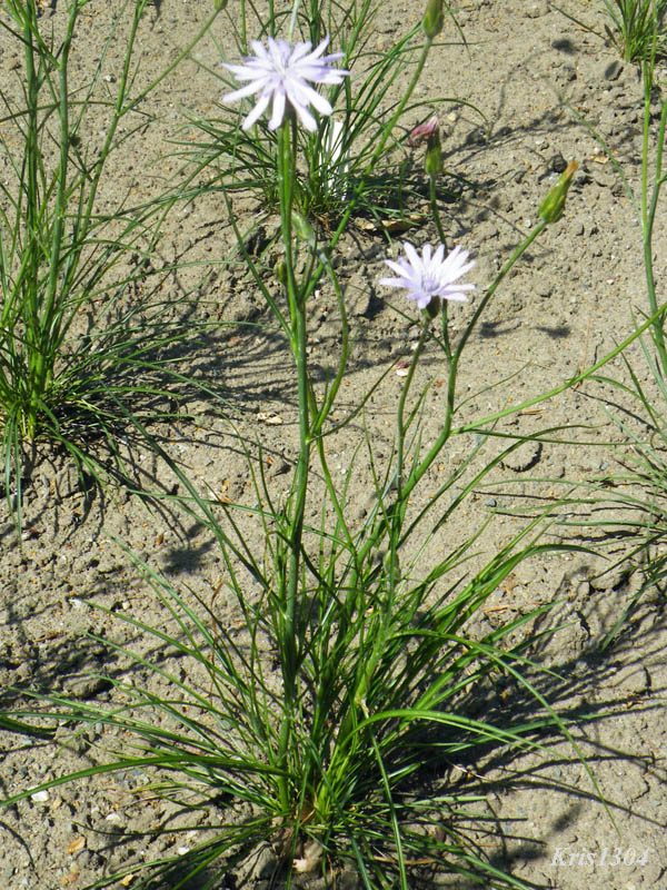 | LIŚCIE | Odziomkowe - liczne, oprócz nich nieliczne i rzadko wyrastające liście łodygowe. Wszystkie są równowąskie, ostro zakończone i rynienkowate, spodem szare i delikatnie owłosione. Nasadą obejmują łodygę i mają prawie równoległą nerwację.