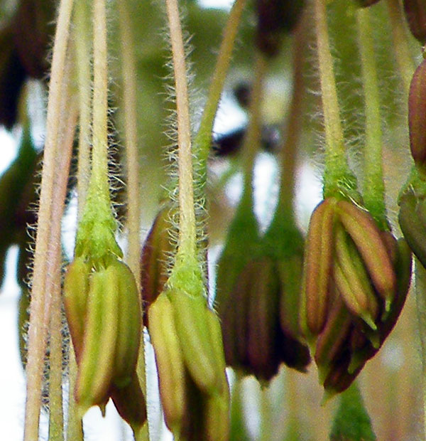 | OPIS | Kwiaty na długich, zwisających szypułkach. Okwiat 6-dzielny o orzęsionych brzegach. Pręciki (6-8) o fioletowych pylnikach. Znamiona białe.
