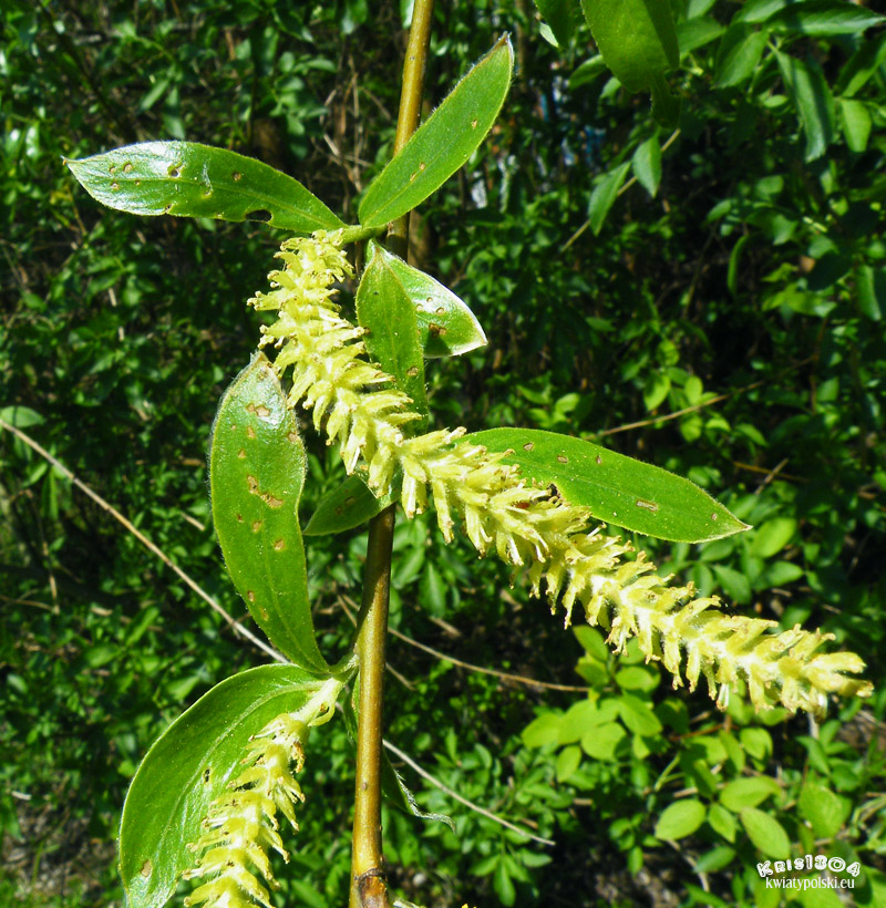 | OPIS | Jest rośliną dwupienną, kwiaty zebrane w kwiatostany zwane kotkami, lub zwyczajowo baziami. Kotki żeńskie w nasadzie luźnokwiatowe, o języczkowatych i nietrwałych przysadkach jasnordzawego koloru. Kwiaty z 1 gruczołem miodnikowym, słupek nagi z siedzącą zalążnią. Kotki męskie z jednobarwnymi przysadkami, dwoma gruczołami miodnikowymi i 2 pręcikami o nitkach owłosionych w dolnej części.
