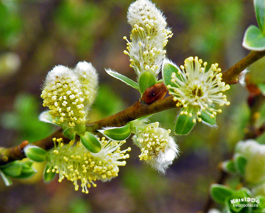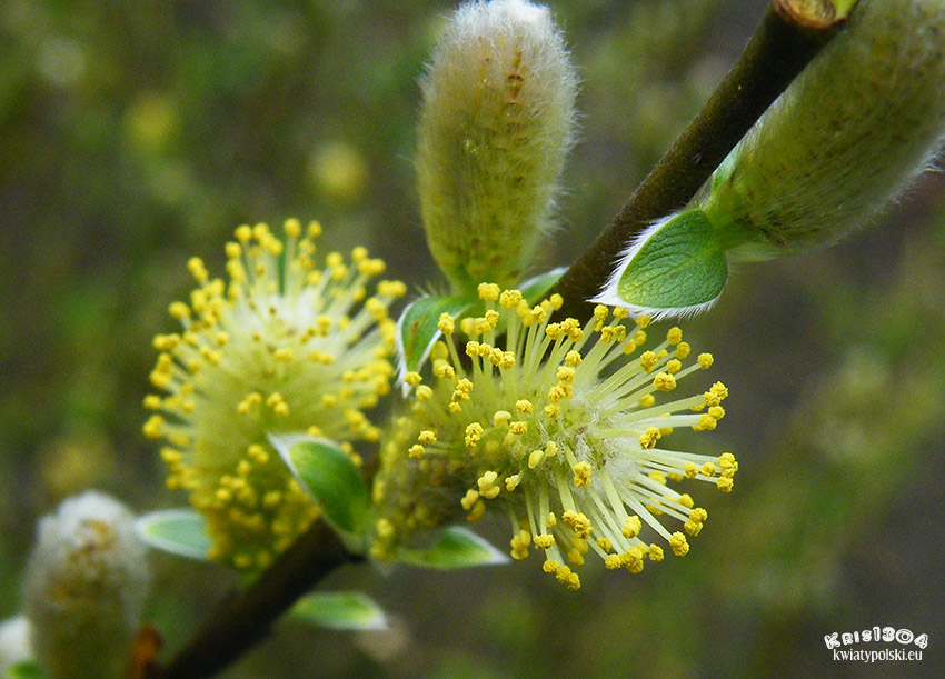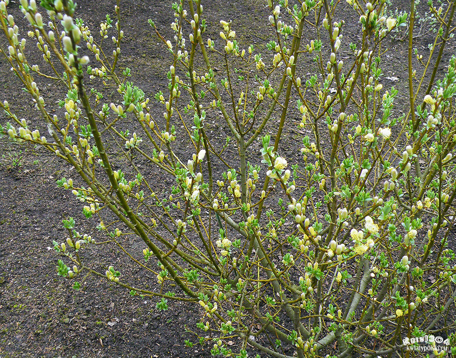 | OPIS | Roślina dwupienna. Kwiaty zebrane w kwiatostan zwany kotką, o łuskach ciemniejszych na końcu. Kotki męskie o długości do 2,5 cm. Mają wolne pręciki o nagich nitkach. Kotki żeńskie do 4 cm długości, o szyjce słupka równej długością zalążni, znamiona słupka dużo krótsze. Męskie kwiaty posiadają jeden miodnik.