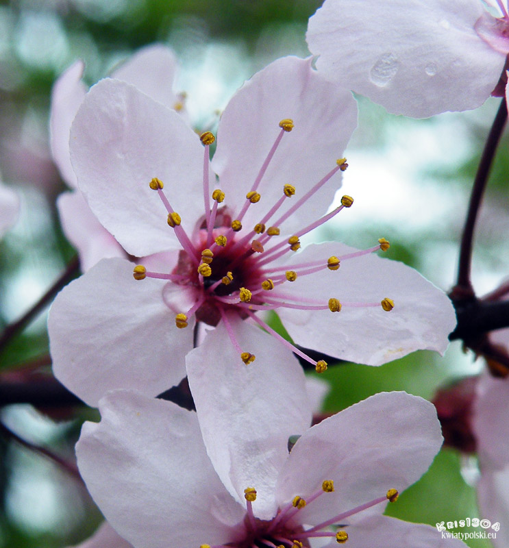 | OPIS | Kwiaty pojawiają się jeszcze przed rozwojem liści. Wydzielają słabą, delikatną woń. Pełne, białe lub biało-różowe (zależnie od odmiany) kwiaty zebrane są w kwiatostan, po kilka lub kilkanaście kwiatów. Kwiaty o średnicy do 4 cm, przedsłupne, zapylane przez owady. Roślina kwitnie wiosną niezwykle obficie.
