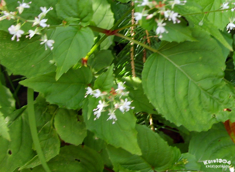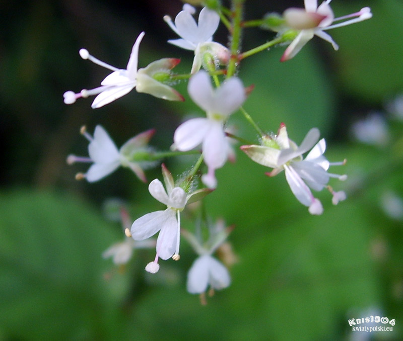 | OPIS | Bylina. Kwiaty drobne, białe lub różowe, zebrane w rozgałęziony, groniasty kwiatostan. Oprócz kwiatostanu szczytowego występują liczne grona boczne. Kwiaty zwykle bez przysadek. Przed kwitnieniem oś kwiatostanu wydłuża się, co powoduje, że rozwinięte kwiaty i pączki są oddalone od siebie.