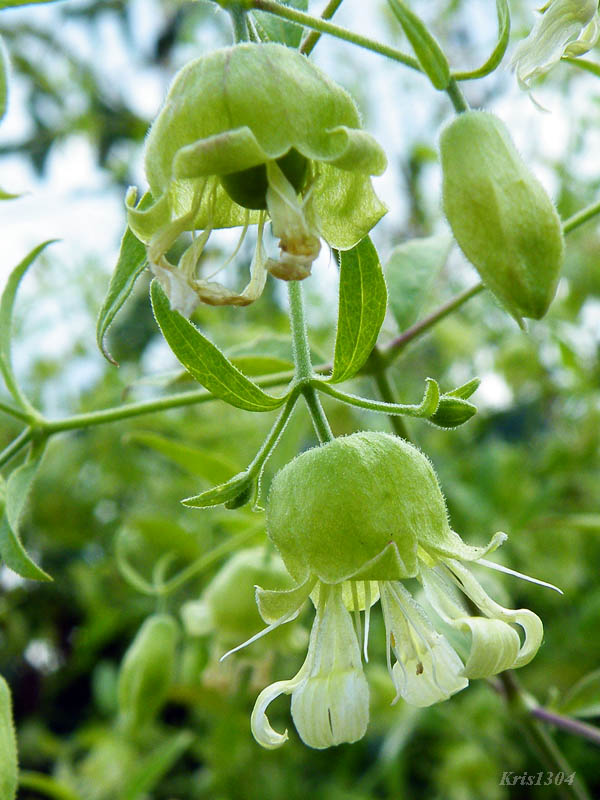 | OPIS | Kwiaty w kątach liści ustawione dychotomicznie (pojedynczo mogą występować na szczycie pędu) na krótko owłosionych osadkach. Kwiaty pięciokrotne. Płatki korony dwudzielne, wydłużone, jasnozielone, na końcach białe. Działki kielicha dołem dzwonkowato zrośnięte, górą głęboko rozcięte.