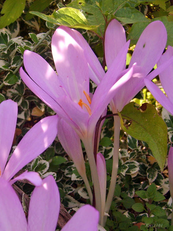 | OPIS | Kwiaty o długiej, białej rurce, osadzone pojedynczo, 6 pręcików, 3 szyjki. Zalążnia zimowita znajduje się w głębi długiej rurki kwiatowej, pod ziemią, gdzie pozostaje do wiosny.