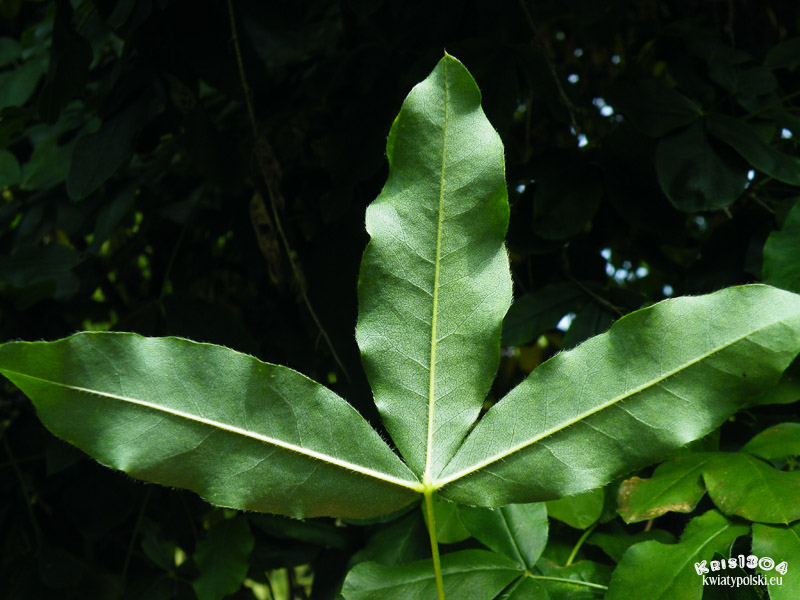 | LIŚCIE | Trójlistkowe, długoogonkowe, pojedyncze listki szerokoeliptyczne brzegiem lekko orzęsione, od spodu srebrzysto owłosione.