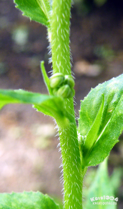 | OPIS | Na każdym wierzchołkowym rozgałęzieniu pojawia się dość gęsty kwiatostan mogący mieć do 30 kwiatków. Pojedyncze kwiatki są około 2 centymetrowej średnicy złożone z 4 płatków. Cała roślina z wyjątkiem kwiatów jest lekko szorstko owłosiona.