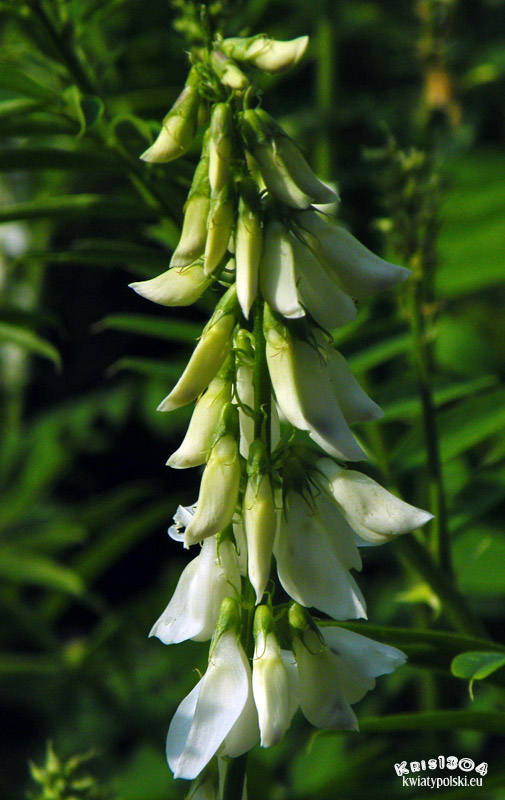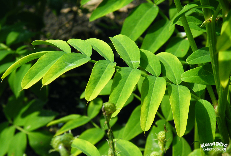 | OPIS | Kwiaty drobne, motylkowe, koloru od białego do fioletowego, zebrane w wyprostowane, groniaste kwiatostany umiejscowione w kątach liści. Każdy kwiat z 10 pręcikami (9 zrośniętych i 1 wolny) oraz 1 słupkiem.