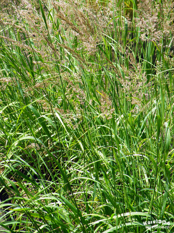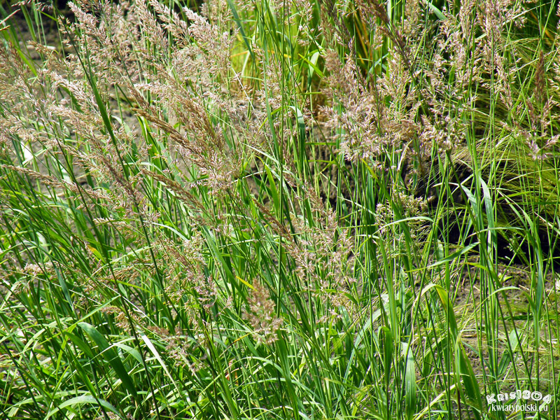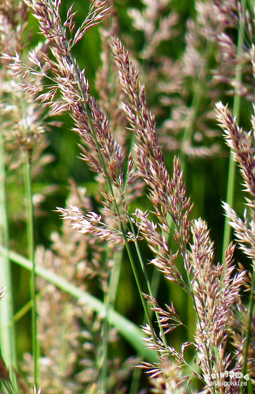 | OPIS | Kwiaty zebrane w kłoski, te z kolei zebrane w wąską wiechę. Plewy jasnofioletowe, długości 4-5 mm. Plewka dolna zielonawa, oścista, długości 4 mm, z licznymi włoskami u podstawy tej samej długości. Ość zgięta, dłuższa od plewki dolnej, wyrastająca u jej podstawy, niewiele dłuższa od plew.