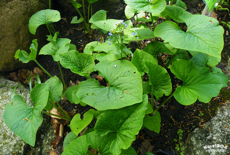 | LIŚCIE | Liście odziomkowe o sercowatej nasadzie, na długich ogonkach. Na liściach widoczne unerwienie.