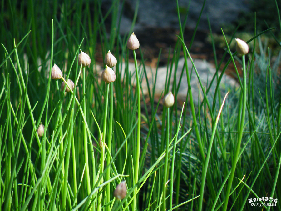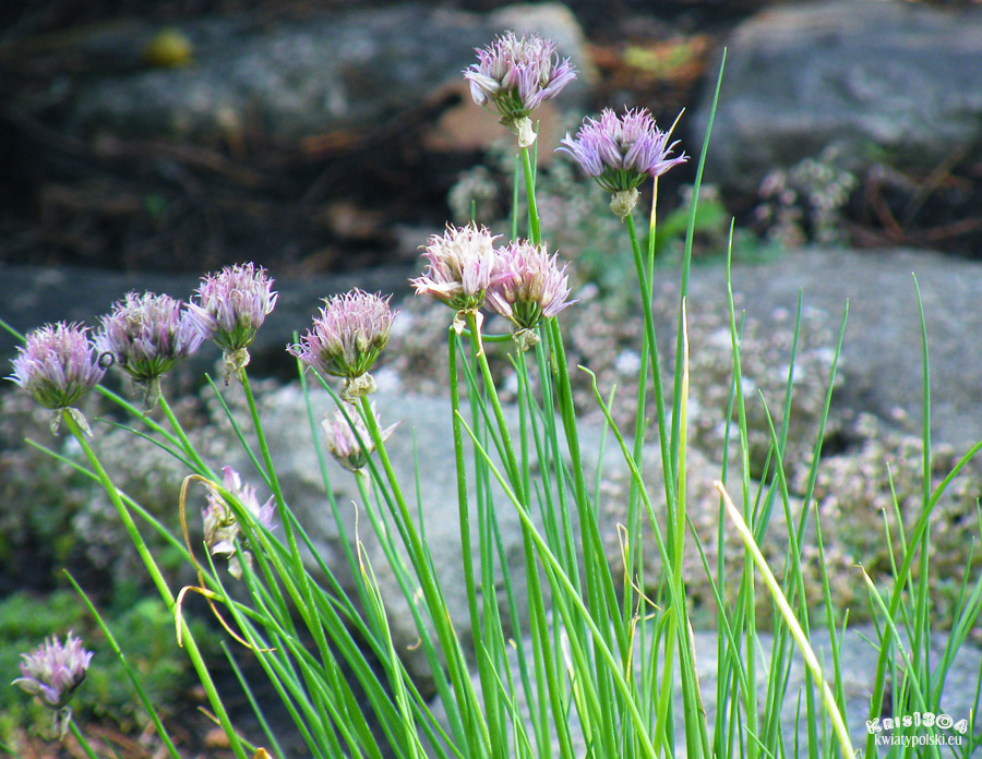 | OPIS | Bylina. Kwiaty zebrane w kulisty baldach. Działki okwiatu fioletoworóżowe, wąskolancetowate, zaostrzone, długości 10-15 mm. Pręciki bez ząbków, krótsze od działek.