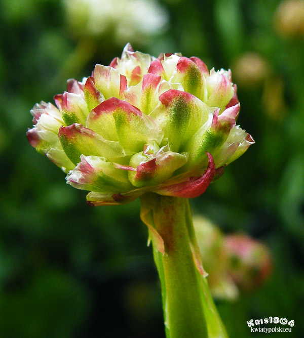 | OPIS | Kwiaty zebrane w wielokwiatowe główki. Pęki przed rozwinieciem czerwonawe.