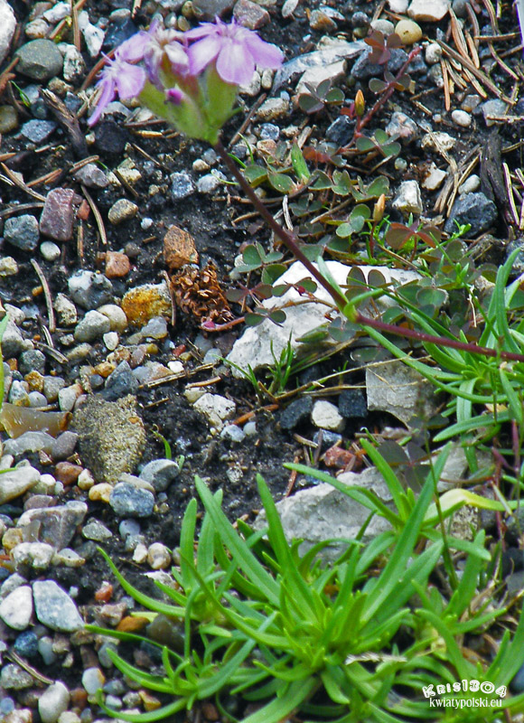 | OPIS | Najczęściej 3 kwiaty na końcu pędu, różowe lub fioletowo-różowe, o średnicy 1 cm. Kielich czerwonawy z ostrymi ząbkami. Płatki jajowate, niewcinane.