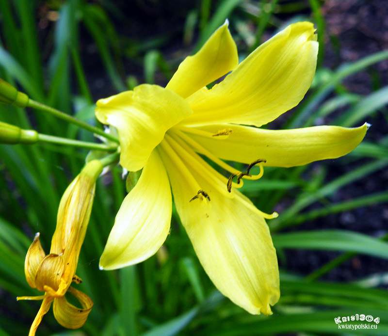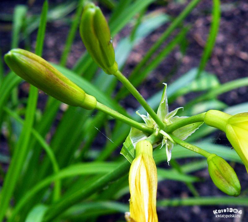 | OPIS | Kwiaty żółte, bezwonne, mniejsze niż u liliowców innych gatunków.