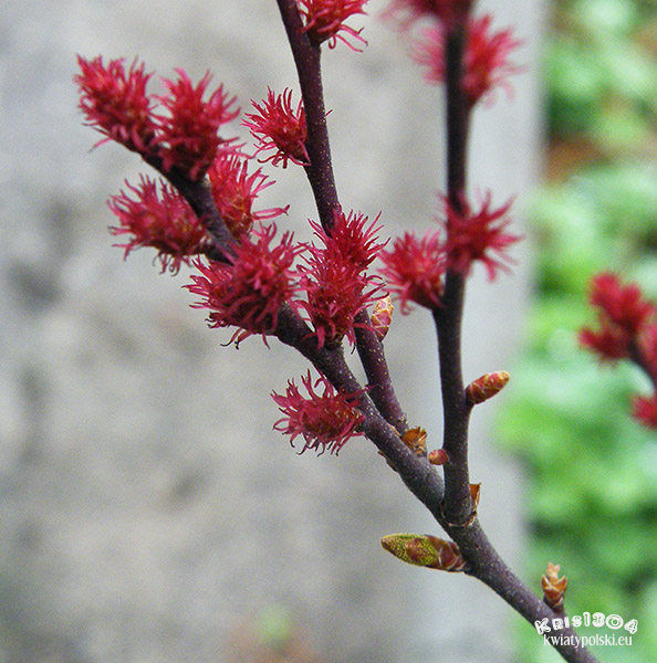 | OPIS | Kwiaty niepozorne, zebrane są w ciemnowiśniowej barwy, siedzące kotki męskie i żeńskie, woskownica jest bowiem zazwyczaj rośliną dwupienną. Zdarza się, że w różnych latach ta sama roślina wytwarza przemiennie raz kwiaty męskie, raz żeńskie. Kwiatostany rozwijają się na zeszłorocznych pędach przed pojawieniem się liści. Kotki męskie osiągają do 10-15 mm długości. Są nierozgałęzione, kwiaty zawierają zwykle po 4 pręciki z czerwonymi pylnikami i osłonięte są przysadkami dłuższymi od pręcików, brązowymi na brzegu, białawymi w środku. Okwiatu brak. Kwiatostany z kwiatami żeńskimi są krótsze (osiągają do 6-7 mm długości) i grubsze, z zielonymi lub brunatno-białawymi przysadkami. Słupek złożony jest z 2 owocolistków i posiada 2 nitkowate znamiona. Nitka słupka jest czerwona, znamiona purpurowe.