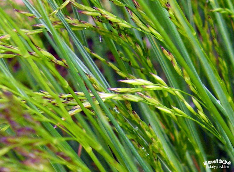 | OPIS | Trawa tworzy gęste kępy. Wysokość 10 - 20 cm, z kwiatostanami do 45 cm. Kłosy szarawe, otwarte.