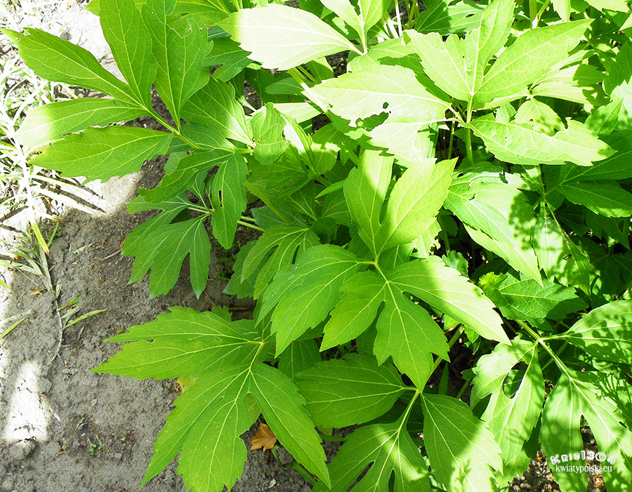 | LIŚCIE | Całobrzegie, nagie, szorstkie. Dolne liście są pierzastodzielne i składają się z 5-7 jajowatego kształtu i wcinanych listków. Liście środkowe są 3-5 sieczne, a najwyższe są niepodzielone.