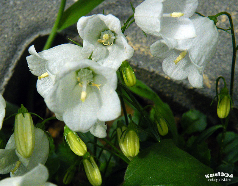 | OPIS | Kwiaty wyrastają pojedynczo na wyprostowanych szypułkach, duże, dzwonkowate, białe.