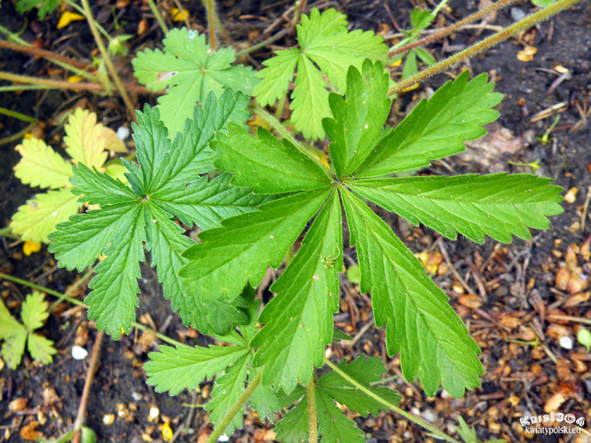 | LIŚCIE | Palczasto złożone, dolne na ogonkach, górne mogą być siedzące. Listki karbowane.