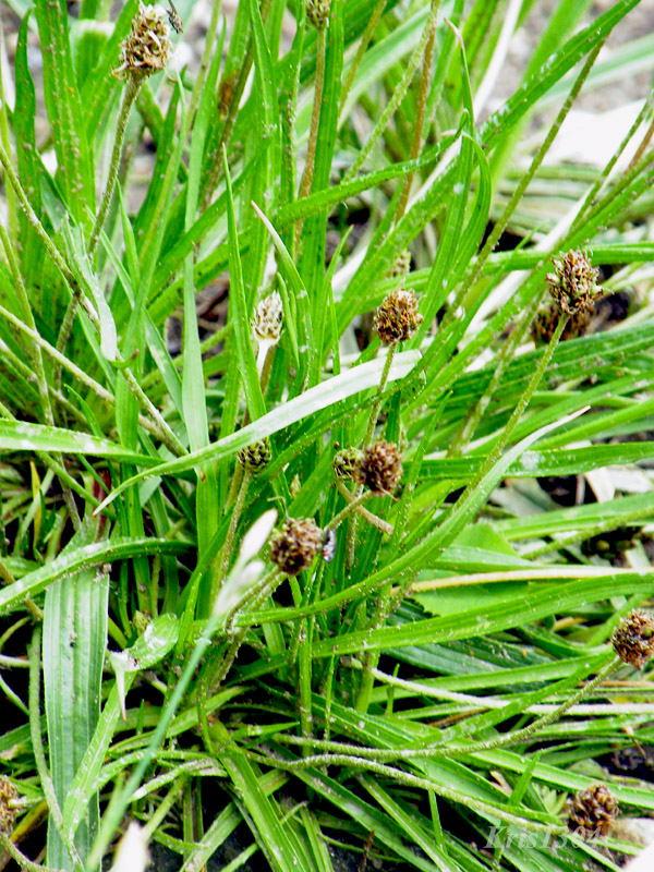 | OPIS | Kwiaty zebrane w gęsty, jajowaty lub kulisty kłos, przed rozkwitnięciem osnuty gęstymi włoskami. Przysadki brunatne i szeroko obłonione. Działki kielicha niemal do nasady wolne. Korona brunatna o długości ok. 2 mm. Pręciki o białych nitkach.
